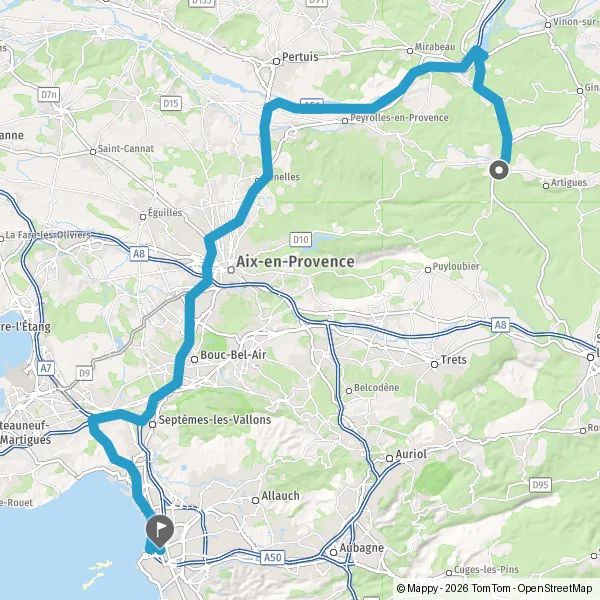 Au rond-point, prendre la 2ème sortie sur D3 (Route de Ginasservis) et continuer sur 1,7 kilomètre