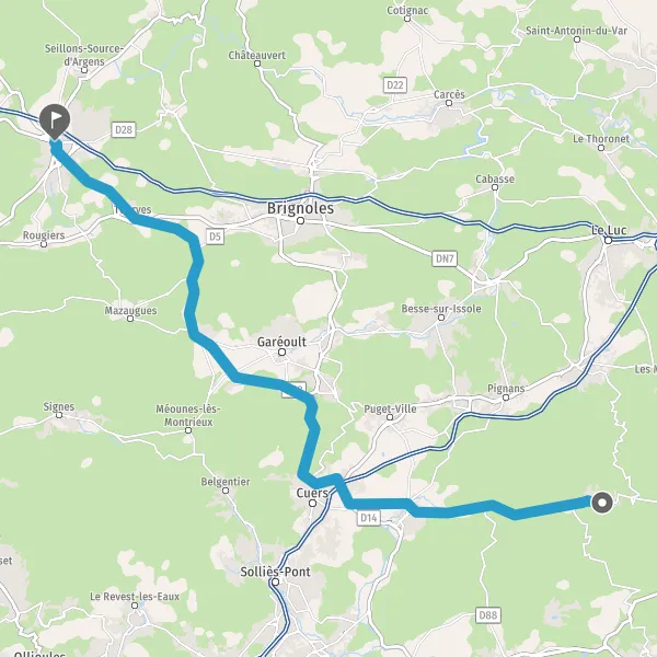 Au rond-point, prendre la 1ère sortie sur D14 (Route de Pierrefeu) et continuer sur 1,6 kilomètre