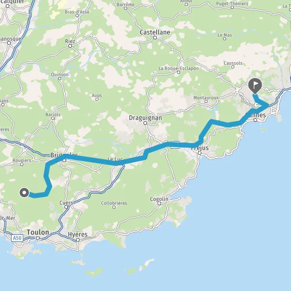 Tourner légèrement à droite sur D2 (Route de Méounes) et continuer sur 4,5 kilomètres