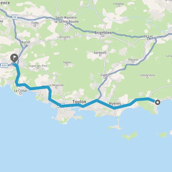 Payer 2,60 € (Péage Bandol) Payer 2,60 € (Péage La Ciotat) 36,9 km