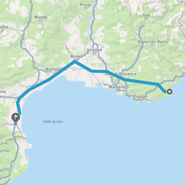 Continuer E15 (La Languedocienne) sur 153 kilomètres