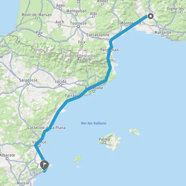Prendre à droite et rejoindre A9 E15. Continuer sur 57 kilomètres
