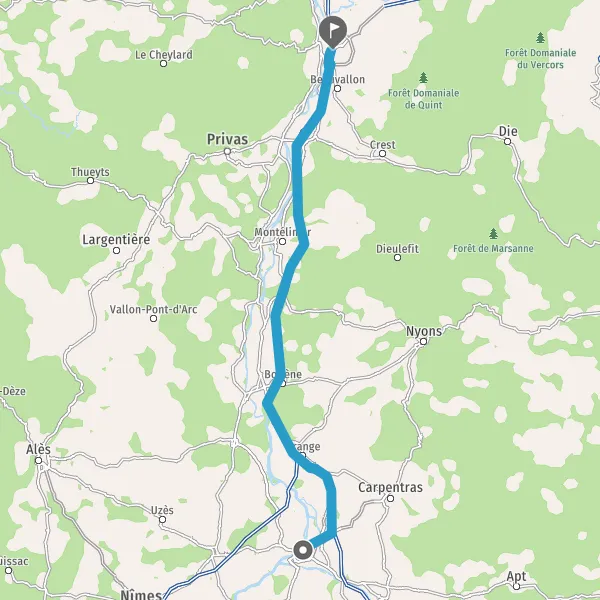 Prendre à droite et rejoindre D7 (Place Jean Étienne Championnet). Continuer sur 160 mètres