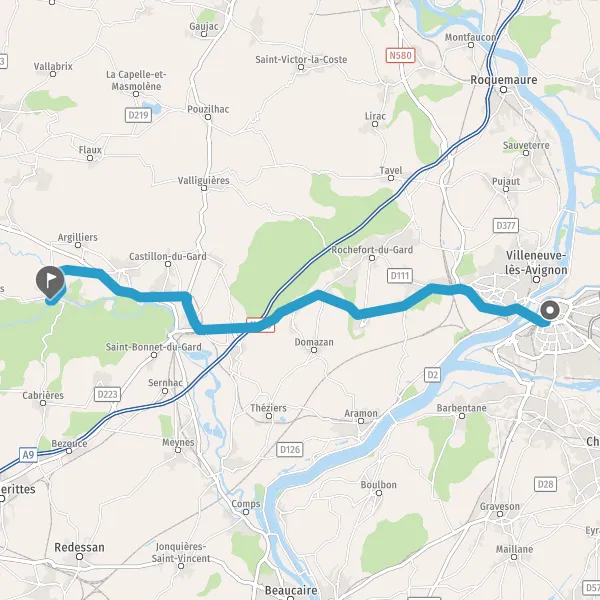 Tourner légèrement à droite sur N100 (Route Nationale de Montpellier à Avignon) et continuer sur 2,1 kilomètres