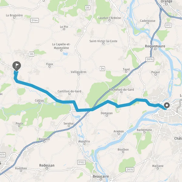 Tourner légèrement à droite sur N100 (Route Nationale de Montpellier à Avignon) et continuer sur 2,1 kilomètres