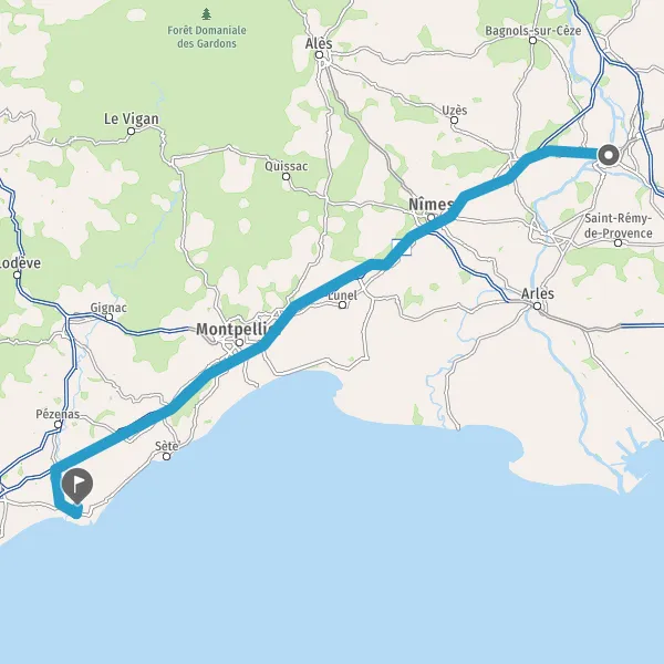 Tourner légèrement à droite sur N100 (Route Nationale de Montpellier à Avignon) et continuer sur 2,1 kilomètres