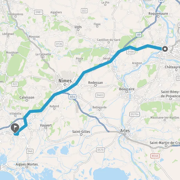 Tourner légèrement à droite sur N100 (Route Nationale de Montpellier à Avignon) et continuer sur 2,1 kilomètres