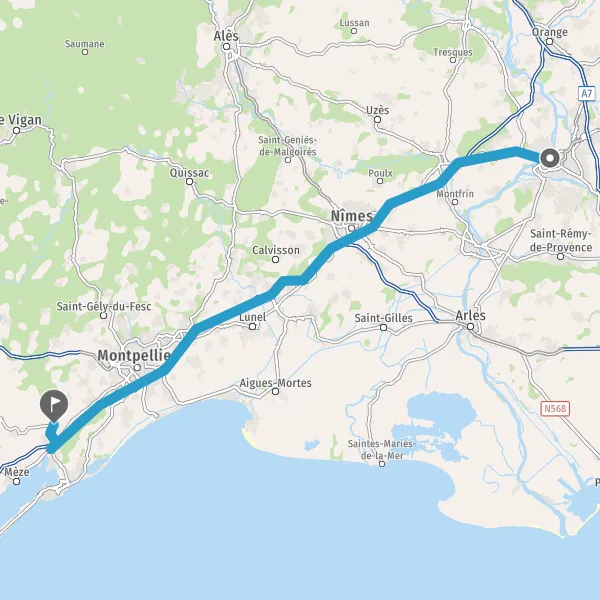 Tourner légèrement à droite sur N100 (Route Nationale de Montpellier à Avignon) et continuer sur 2,1 kilomètres