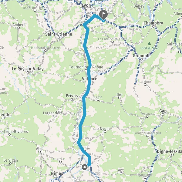Prendre à droite et rejoindre A43 E711 E70. Continuer sur 12 kilomètres