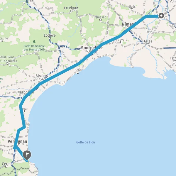Prendre à droite et rejoindre A9 E15. Continuer sur 57 kilomètres