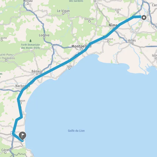 Prendre à droite et rejoindre A9 E15. Continuer sur 57 kilomètres