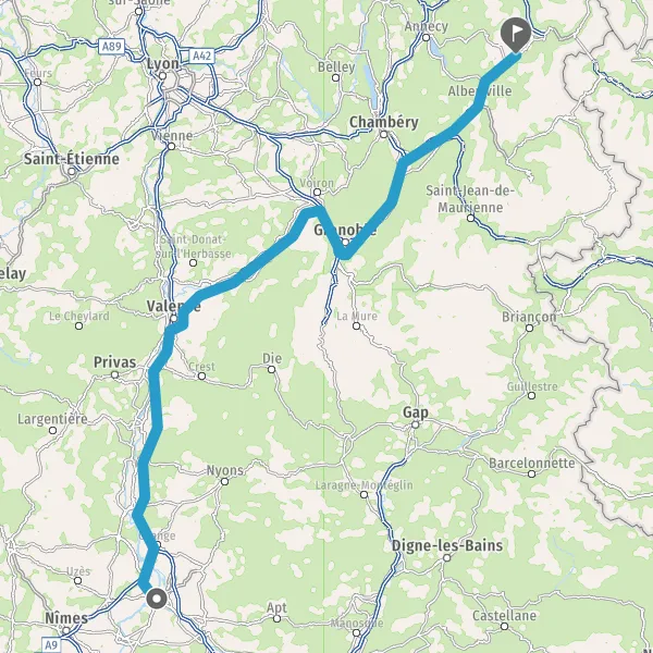 Prendre à droite et rejoindre A43 E70. Continuer sur 19 kilomètres