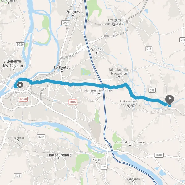 Tourner légèrement à droite sur N100 (Route de Morières) et continuer sur 2 kilomètre