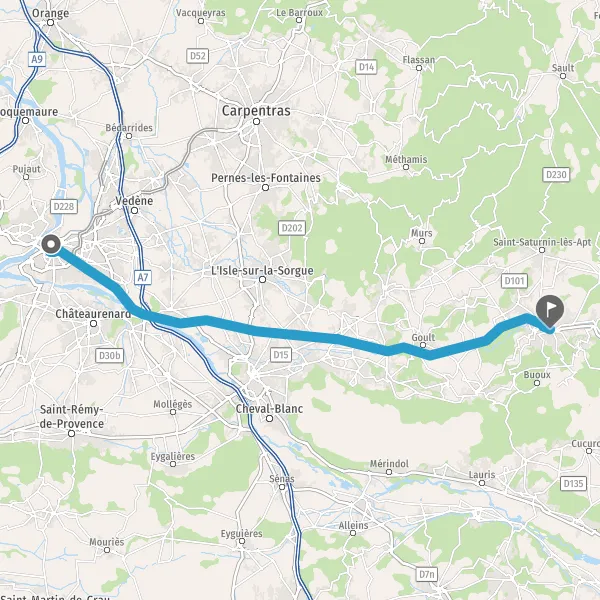 Au rond-point, prendre la 3ème sortie sur D900 (Route d'Avignon) et continuer sur 9,3 kilomètres