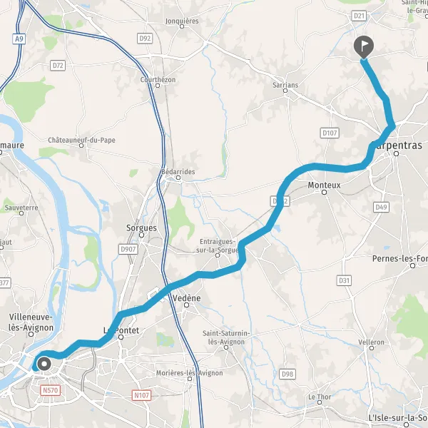 Prendre à droite et rejoindre D942 (Route de Carpentras). Continuer sur 6,6 kilomètres