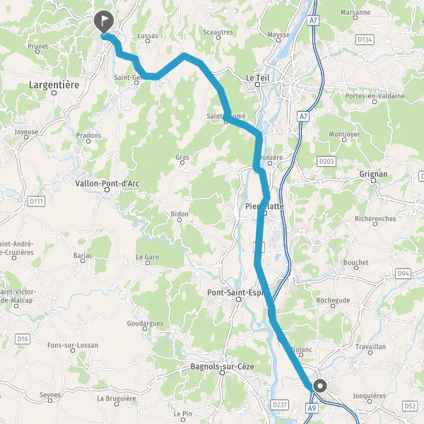 Au rond-point, prendre la 2ème sortie sur N102 (Route d'Aubenas) et continuer sur 8,4 kilomètres