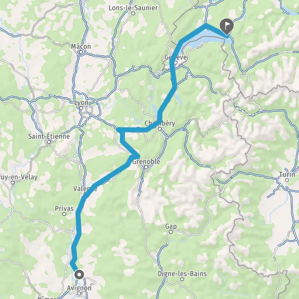 Prendre à droite et rejoindre A43 E70. Continuer sur 47 kilomètres
