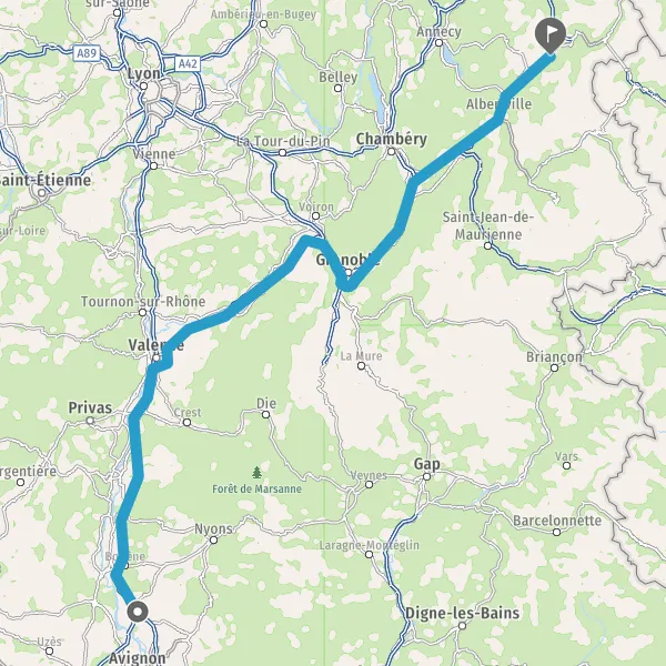 Prendre à droite et rejoindre A43 E70. Continuer sur 19 kilomètres