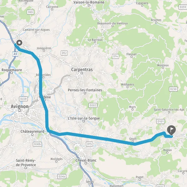 Au rond-point, prendre la 3ème sortie sur D900 (Route d'Avignon) et continuer sur 9,3 kilomètres