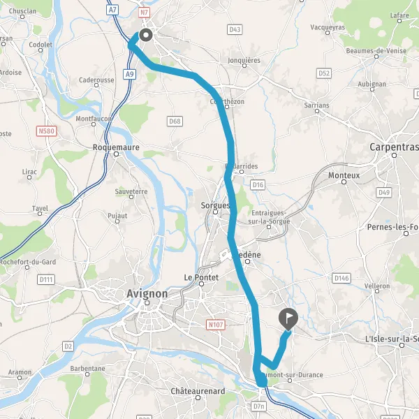 Au rond-point, prendre la 2ème sortie sur D68 (Route de Châteauneuf-du-Pape) et continuer sur 2,2 kilomètres