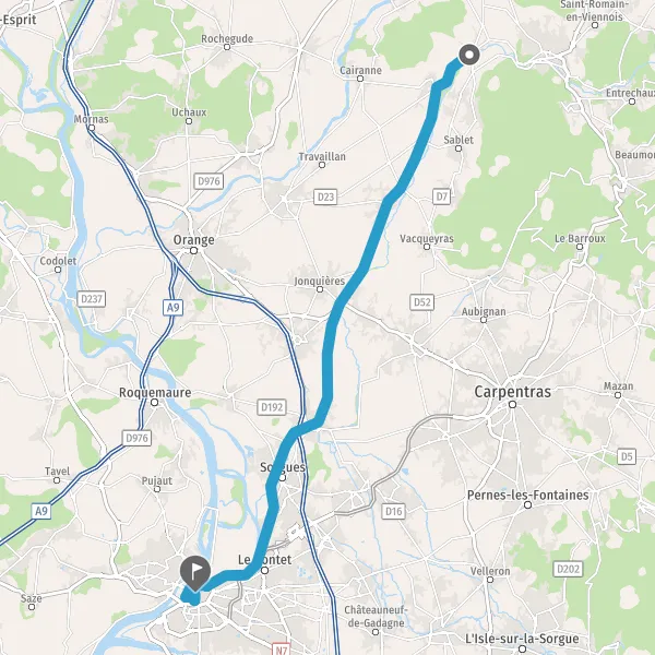 Au rond-point, prendre la 2ème sortie sur D907 (Avenue d'Orange) et continuer sur 3,8 kilomètres