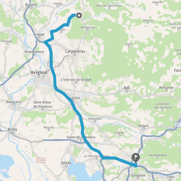 Au rond-point, prendre la 3ème sortie sur D907 (Route d'Orange) et continuer sur 2 kilomètres