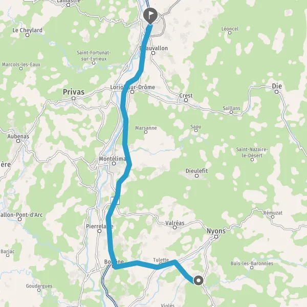 Au rond-point, prendre la 3ème sortie sur D94 (Route de Nyons) et continuer sur 4,7 kilomètres