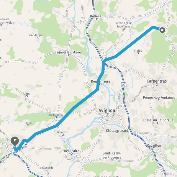 Au rond-point, prendre la 2ème sortie sur D975 (Route d'Orange) et continuer sur 4,2 kilomètres