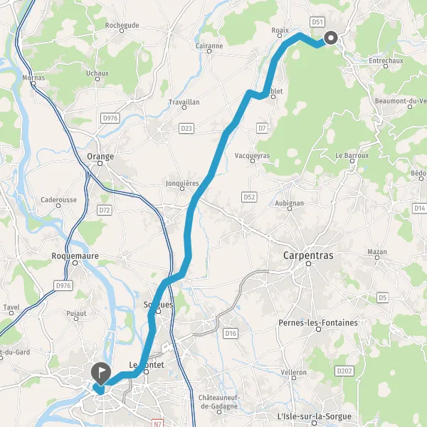 Au rond-point, prendre la 2ème sortie sur D907 (Avenue d'Orange) et continuer sur 3,8 kilomètres