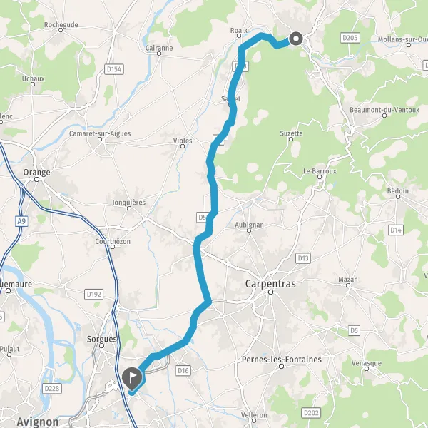Sortir et rejoindre D16 (Route de Carpentras). Continuer sur 150 mètres