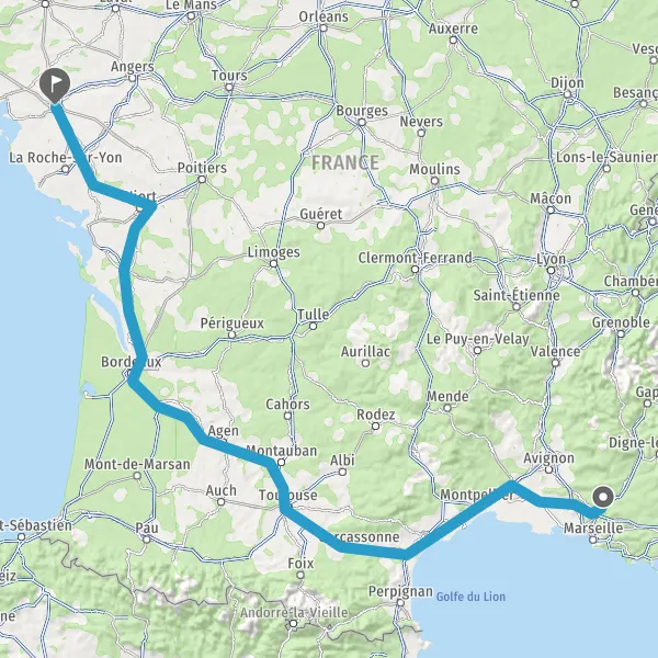 Prendre à droite et rejoindre A83. Continuer sur 150 kilomètres