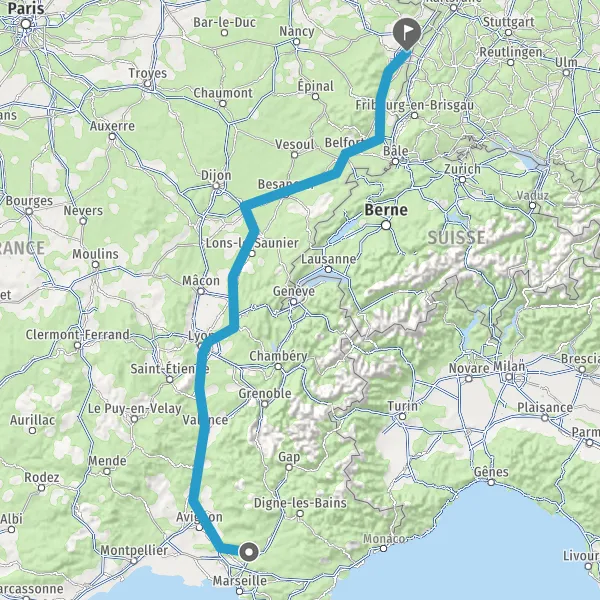 Prendre à droite et rejoindre A36 E60. Continuer sur 125 kilomètres