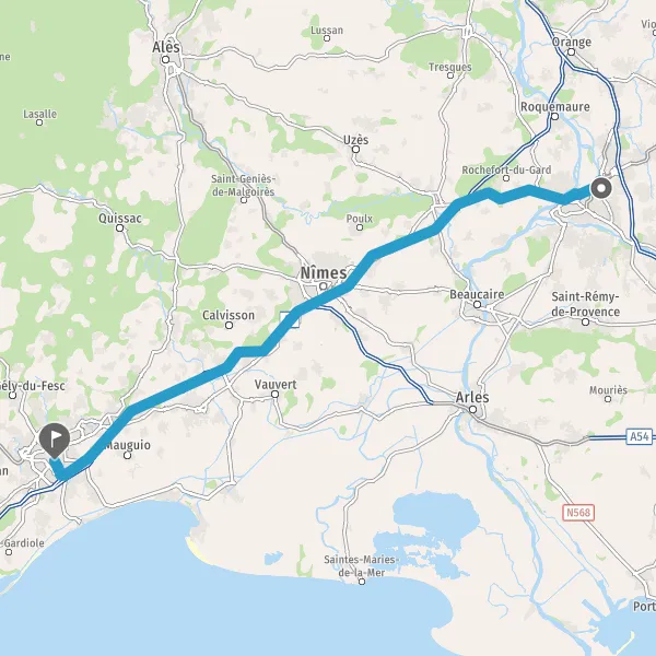 Tourner légèrement à droite sur N100 (Route Nationale de Montpellier à Avignon) et continuer sur 2,1 kilomètres