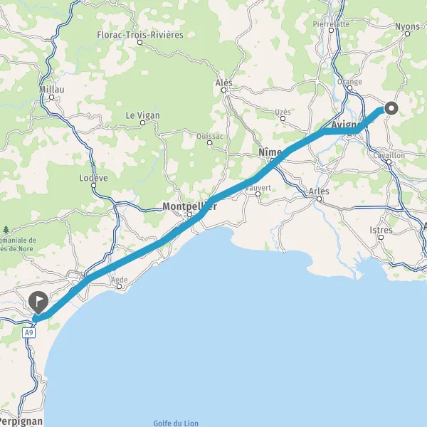 Prendre à droite et rejoindre A9 E15. Continuer sur 57 kilomètres