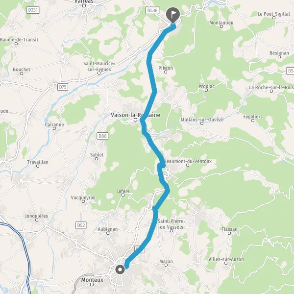 Tourner à gauche sur D938 (Route de Vaison) et continuer sur 4,5 kilomètres