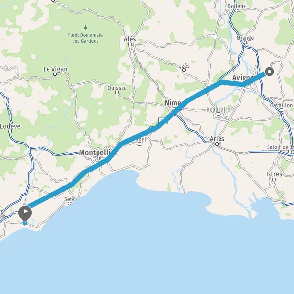 Tourner légèrement à droite sur N100 (Route Nationale de Montpellier à Avignon) et continuer sur 2,1 kilomètres