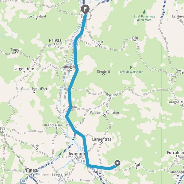 Au rond-point, prendre la 2ème sortie sur D900 (Route de Banon) et continuer sur 7,8 kilomètres