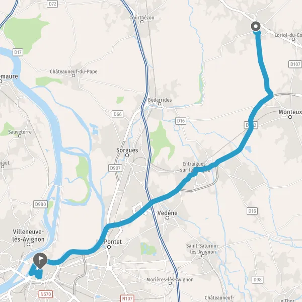 Sortir et rejoindre D16 (Route de Carpentras). Continuer sur 150 mètres
