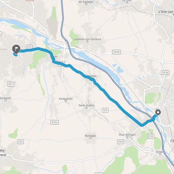 Tourner à droite sur D26 (Route de Noves) et continuer sur 2,1 kilomètres