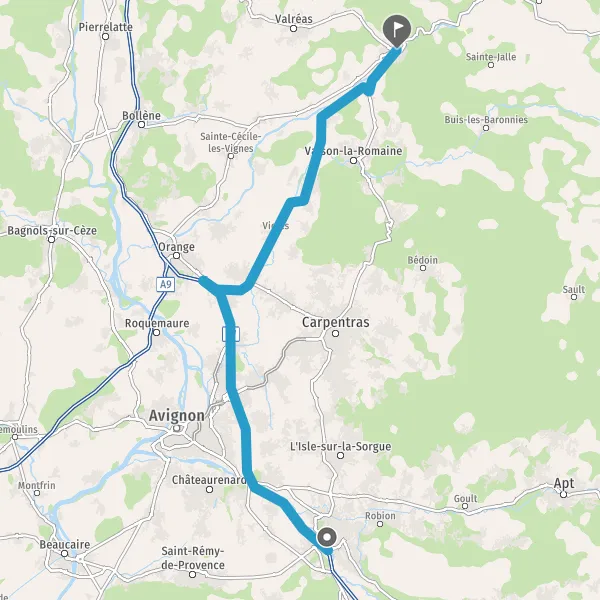 Au rond-point, prendre la 2ème sortie sur D977 (Route de Vaison-la-Romaine) et continuer sur 3,1 kilomètres