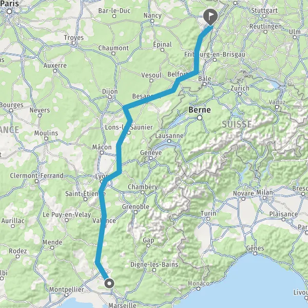 Prendre à droite et rejoindre A36 E60. Continuer sur 185 kilomètres