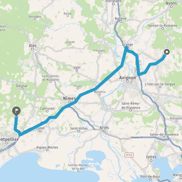 Tourner légèrement à droite sur N100 (Route Nationale de Montpellier à Avignon) et continuer sur 2,1 kilomètres