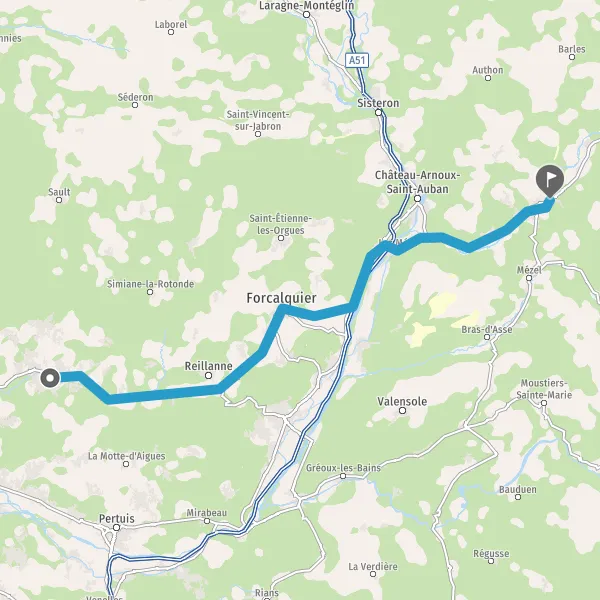 Au rond-point, prendre la 4ème sortie sur D12 (Route de Digne) et continuer sur 19 kilomètres