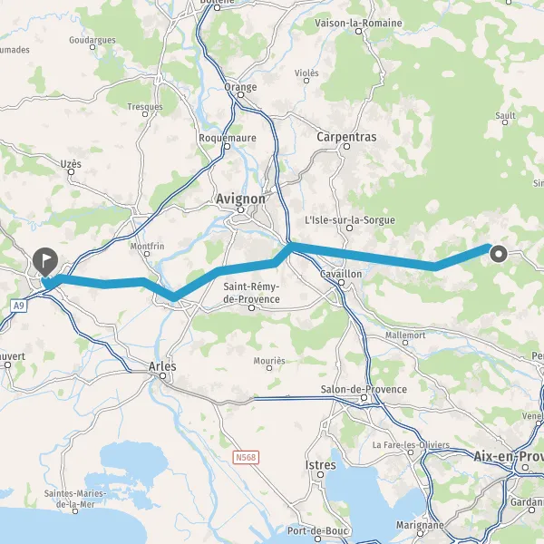 Au rond-point, prendre la 2ème sortie sur D970 (Route de Tarascon) et continuer sur 8,1 kilomètres