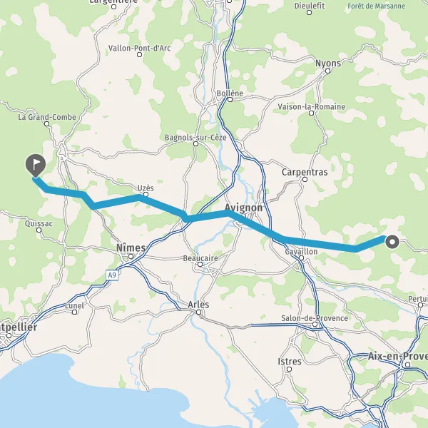 Tourner légèrement à droite sur N100 (Route Nationale de Montpellier à Avignon) et continuer sur 2,1 kilomètres