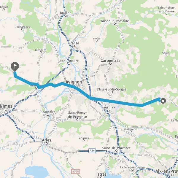 Tourner légèrement à droite sur N100 (Route Nationale de Montpellier à Avignon) et continuer sur 2,1 kilomètres