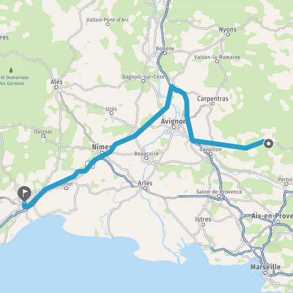 Au rond-point, faire demi-tour et continuer sur N129 (Route de Marseille) sur 350 mètres