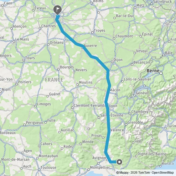 Prendre à droite et rejoindre A6. Continuer sur 294 kilomètres