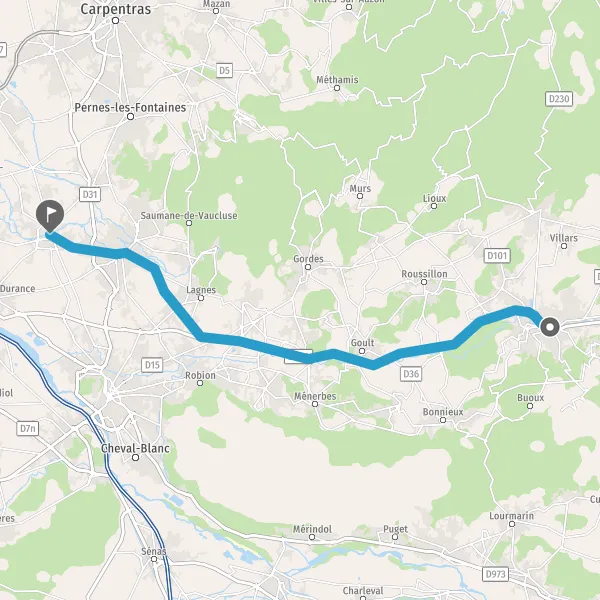 Au rond-point, prendre la 2ème sortie sur D901 (Route de l'Isle sur Sorgue) et continuer sur 1,2 kilomètre