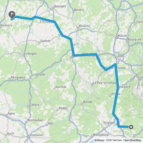 Prendre à droite et rejoindre A72. Continuer sur 53 kilomètres